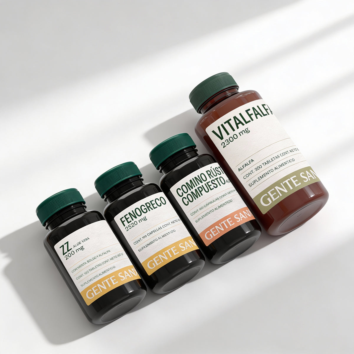 El Kit Digestivo es una solución completa para la armonía intestinal. Combina la acción del Comino Rústico y el Fenogreco para facilitar la digestión y reducir la sensación de pesadez. La Vitalfalfa aporta nutrientes clave para la salud digestiva, mientras que ZZ (Aloe Vera) actúa directamente como un auxiliar para promover la regularidad y aliviar el estreñimiento, logrando un bienestar integral desde adentro.